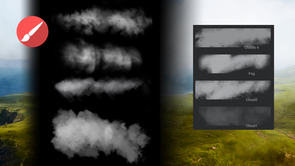 You will get 8 different brushes, clouds of different shapes, fog, dust clouds.
